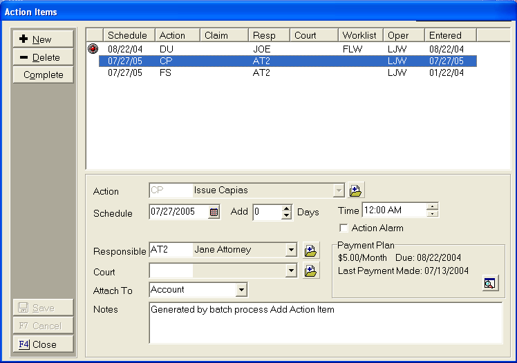4. Select the first debtor to be worked from the list. Users can select the first debtor or scroll and pick another.