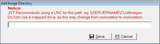 Enter the directory where the images should be saved. JST Recommends using a UNC path to eliminate issues with different workstations being mapped differently.