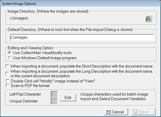 CollectMax allows you several options with the Document Management Module. Prior to using the module, you will need to access the image options to set the Image Directory.