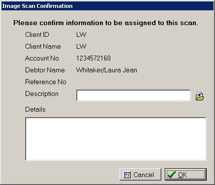 Back on the Image Confirmation Screen, type the new or existing code into the description field.