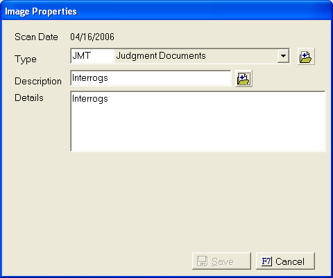 The properties of the image button allows users to view or change the description, type or details of an image.