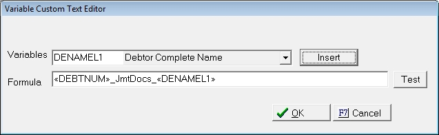 If you would like the file name to export as the account number_jmtdocs_Debtor Name, your formula should look like this: