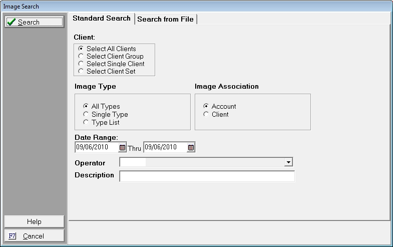 The Imaging Search feature allows you to convert all Compact Documents to Normal Documents. Compact Documents are Images of Documents that have been imaged through a batch type process and are denoted in the list of images by no extension in the EXT column. These Images cannot be exported.