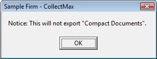 This is warning that no Compact Documents will be exported. Compact Documents are documents that have been imaged via a batch process or a process that images multiple images at the same time.