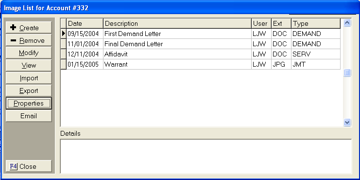 the Imaging List Screen.