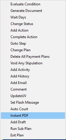Where appropriate, insert or add a new step to the plan to have an Instant PDF image added to the account from a document template.