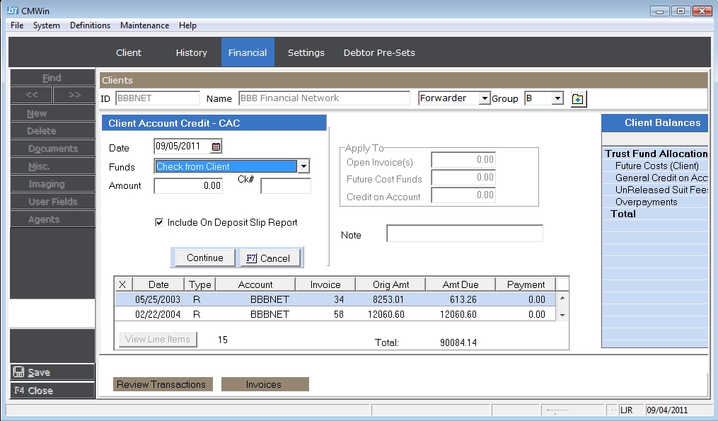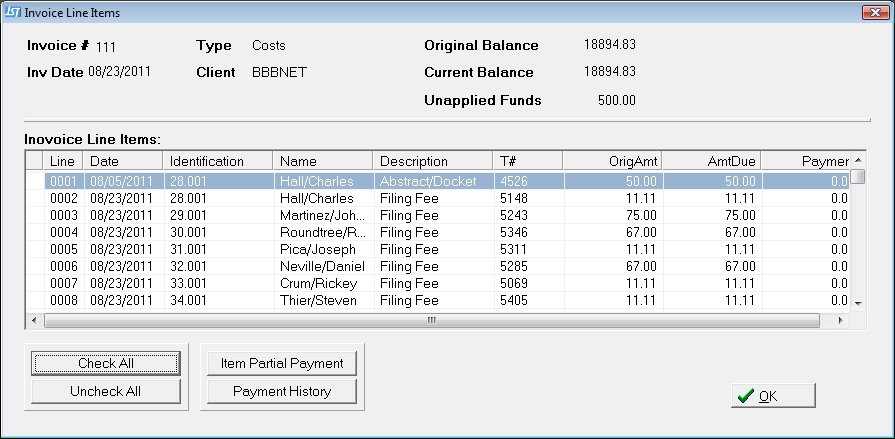 Note: If you select Check All and do not have enough funds to cover the entire amount due on the invoice, CollectMax will allocate the funds as listed above.