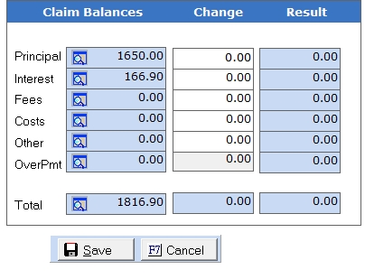 Select the Balance component to change. Enter the amount you need to add or subtract to bring the balance to the correct opening balance in the change column. If you need to subtract remember to enter the "-" before the number. For example: To change the opening principal in the above example to 2500.00, in the change column you would need to enter a -280.59.