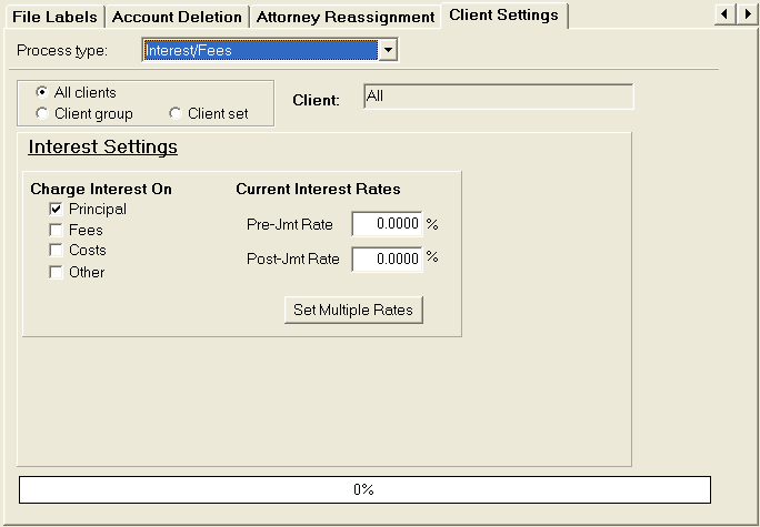 This feature changes the Interest Settings on the Debtor Presets tab of a Clients account.