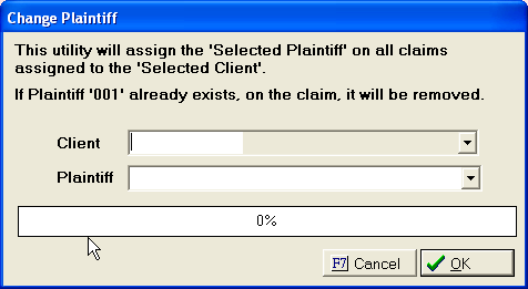Note: Because this process can only be undone one account at a time, JST recommends that a Backup or Snapshot be done prior to completing this process. All accounts under this client will be changed to have the selected plaintiff as the 001 plaintiff.