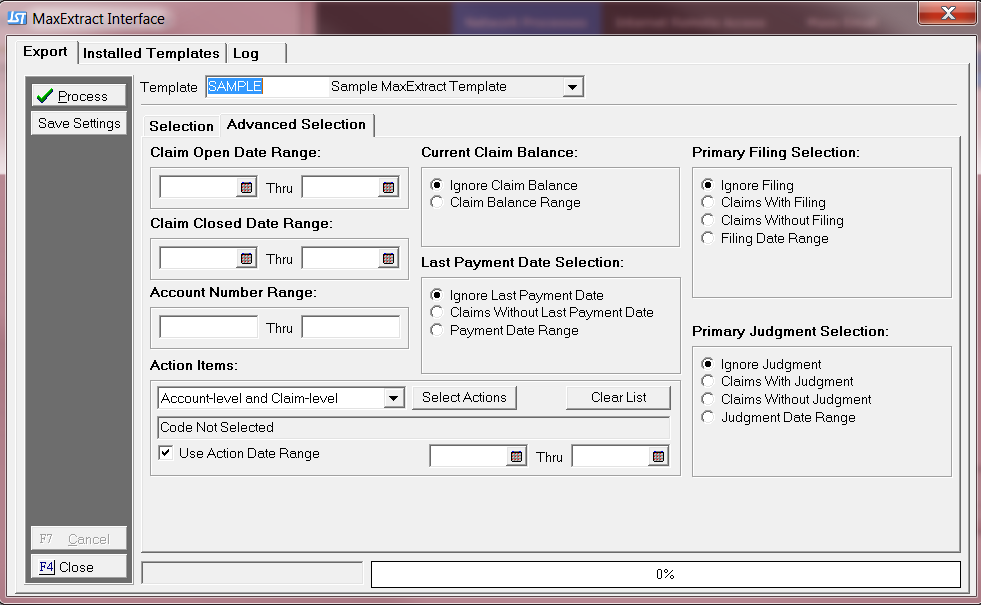 This feature adds the ability to extract more data, such as History Notes, Action Codes and Transactions, more efficiently than the Simple Data Extraction.