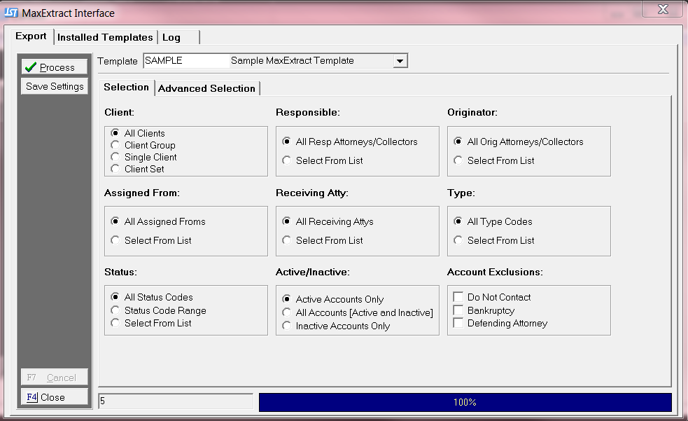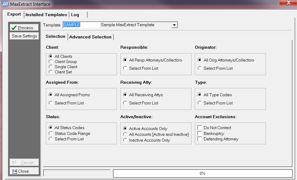 Note: Exceptions -are mainly data issues. Instead of getting errors MaxExtract will skip the account and add an entry to the exception list.