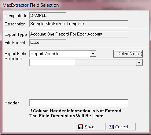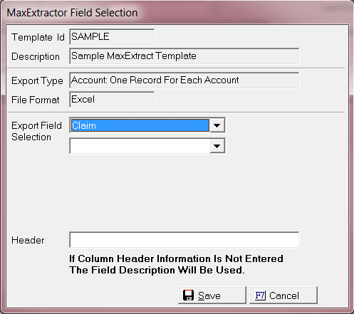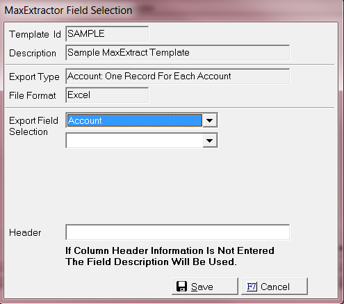 Note: If you check the box for adding a header column. If you leave the header section empty on this screen the field description will be used instead.