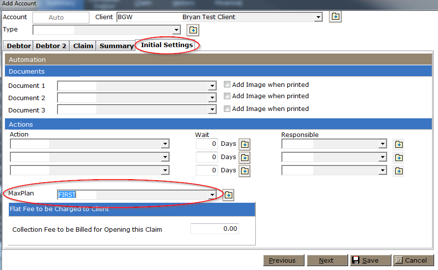 Another way is to attach a MaxPlan when adding new accounts. On the Initial Settings tab, you can select your plan there.