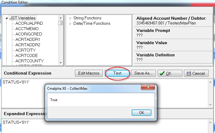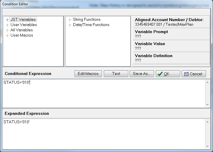 The Tester will bring up the Condition Editor. Here you can test any conditions you want to add to your plan.