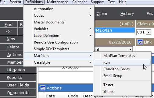 The Shrink feature condenses the MaxPlan history for each claim as defined on the template (Retain Step History). You should only need to do this once, unless you change the settings on a template.