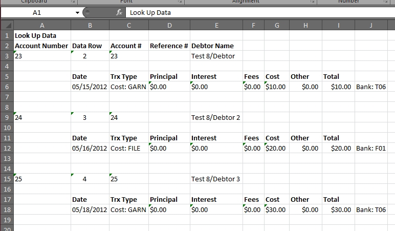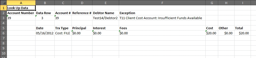 In this example, the process will post Cost 1 from Debtor Payments thus lowering the trust monies to $10. For cost 2 will not be funded because there are insufficient funds in the Trust. Cost 3 will be posted from the Debtor payment funds in the Trust account.