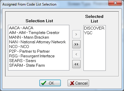 To select the Assigned From, click on the Assigned From/Interface in the Selection List and click the button to move it to the Selected List. Continue until all Assigned Froms/Interfaces have been selected. To Remove an Assigned From from the selected list, click the