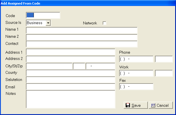 the Assigned From Code represents a network, be sure to check the checkbox. When