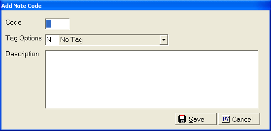 the button on the Note Code screen, the Add Note Code