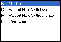 -Select "R" to have the note tagged to appear on selected reports with the note date.