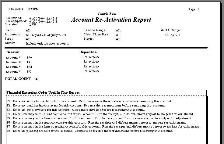 Check a selected debtor to see if it has been moved to the active account list correctly. If not, notify JST Technical Support.