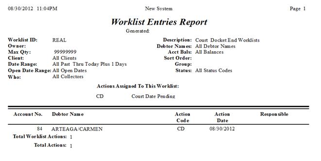 the worklist. Select All to include all debtors