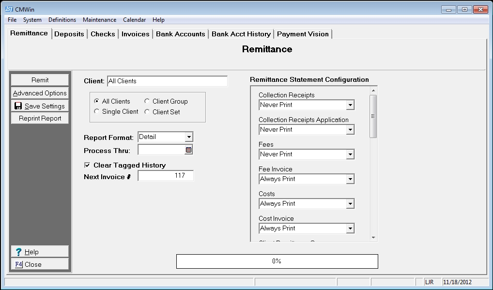 Note: The backup copies of the final remittances are saved on the Server with the CollectMax data folder called RemitZip. JST recommends checking your backup routine to see if it needs to be changed to include this new folder.