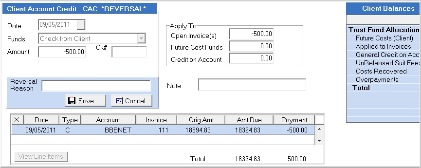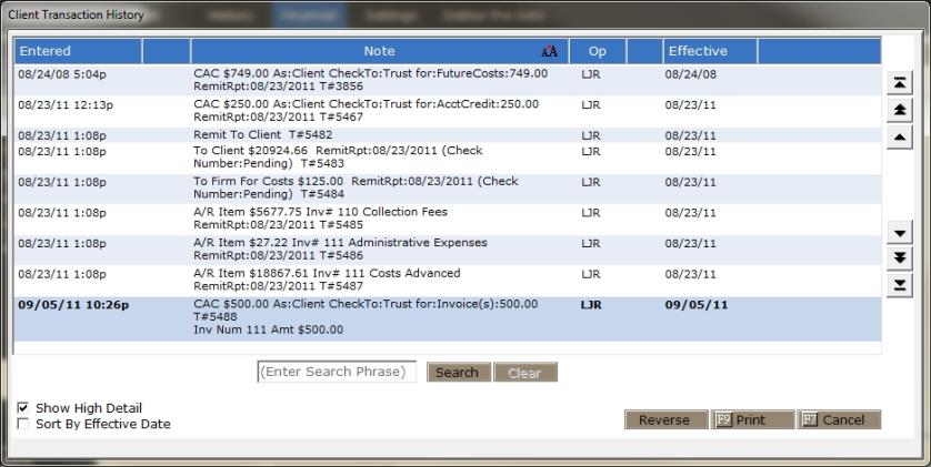 This allows user to review all previous transactions and reverse or delete selected transactions.
