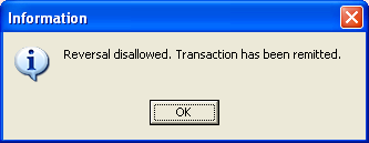 If the transaction has been remitted, it may not be eligible for reversal. If so, a notification will pop-up.