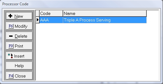The Processor Tab tracks the Process Server Company and the Server's demographics.