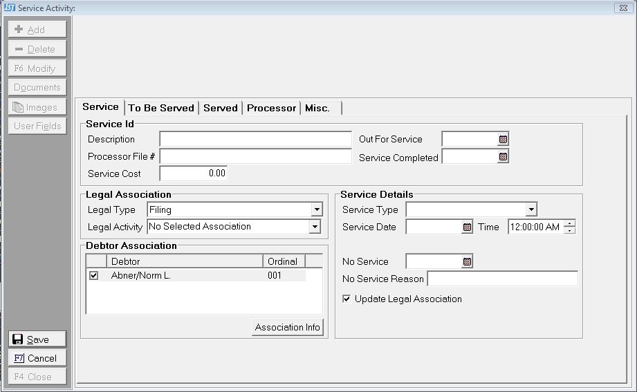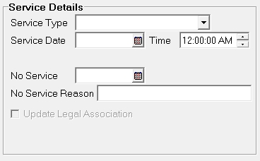 The Legal Association Section is used to help determine the entity being served and the proper service dates to be displayed and updated.