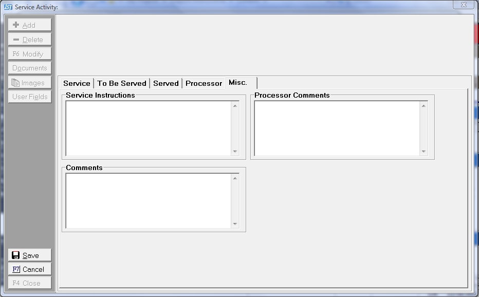 The Miscellaneous Tab lists Server Instructions, Comments about Service and Comments from the Processor.