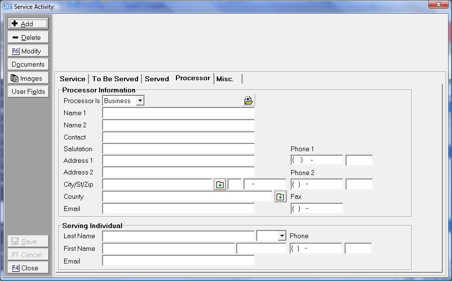 Note: It is possible that the Processor Information and the Serving Individual be the same person. Serving Individual will need to be added manually or copied and pasted.