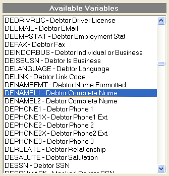 Next, Find the first variable to be included in the extract report from the of Available Variables list.