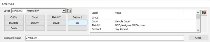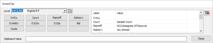 While in SmartClip, you can navigate to another account and the data in SmartClip will be updated with the new accounts information. This makes it possible to use SmartClip with Worklists. You can make a worklist of accounts that need skiptraced or e-filed and move from one to another using SmartClip to more quickly paste into the websites data fields.