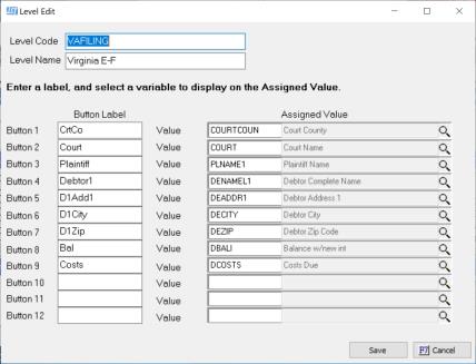 This feature is designed to allow you to set some buttons that for online sites such as skiptracing tools, e-filing or more. You can setup different levels with up to 12 different user defined button to match the data fields you will need.