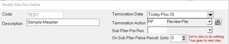From the Menu Bar, select Definitions, MaxPlans, MaxPlans Templates to display the MaxPlan Code Screen.