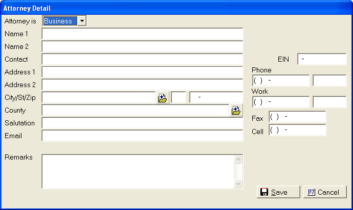 Select if the Attorney Information is a Business or Individual and fill in the following information if available.