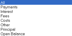 allows users to select which type of transaction to report on. The