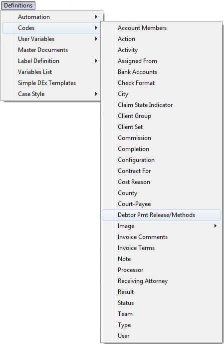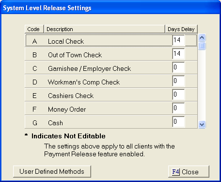 On the Debtor Payment Release screen, add any release delays for these new codes.
