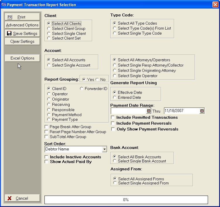 - Select to List accounts by the Paid By Debtor instead of the Primary