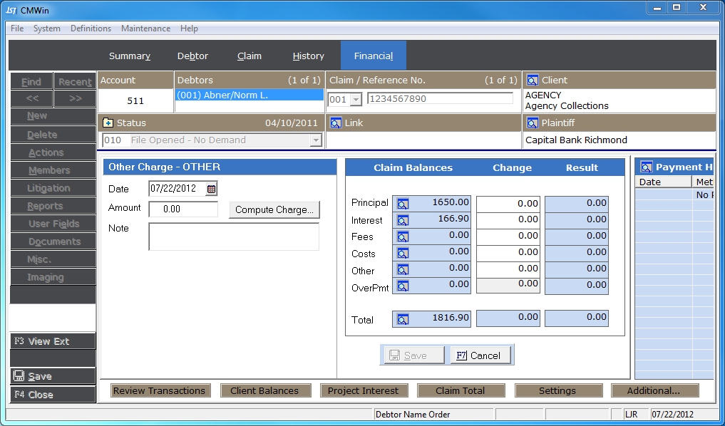 This transaction allows you to adjust the amount owed in the Other balance of the debt.