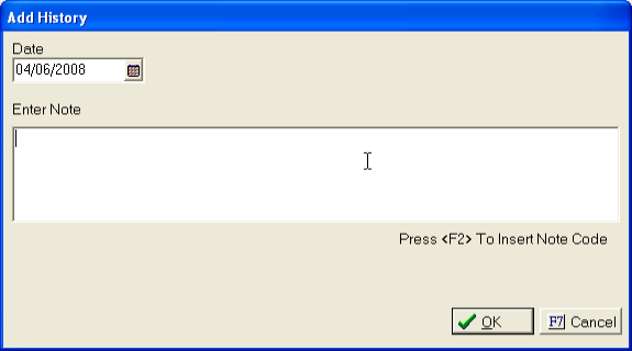 Next add the note by typing in the Note field or click the F2 key on your keyboard to go to the note code screen.