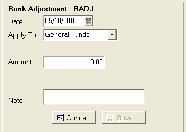 Note: Adjustments made to the bank accounts will not be used for future cost funds or remittance. You must post those types of transactions on the client or debtor accounts.