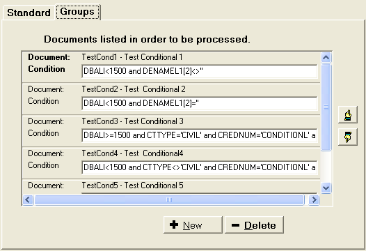 This feature provides the ability to add condition statements to each document in a document group. Conditional statements are a way to add selection criteria a document thus narrowing the scope of the accounts/claims that will be eligible to print this document. Users using this module will be able to print group documents ensuring the proper document generate for each debtor account.