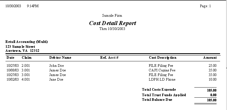 The Cost Detail Report will print a detailed report of all costs expended during the remittance period including the cost description.