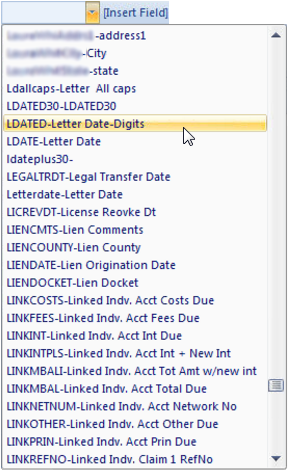 Select the proper mergefield. If unsure of which variable to pick, see Variable List for instructions on printing a list of variables.