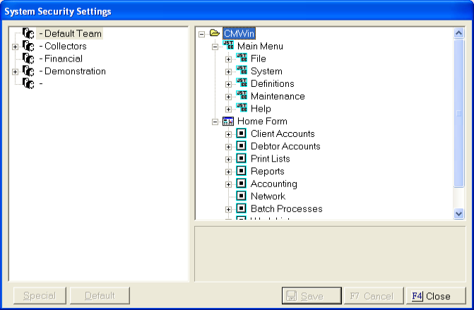 System rights can be established based on operator codes. An operator's ability to access and control major system functions can be set by management.