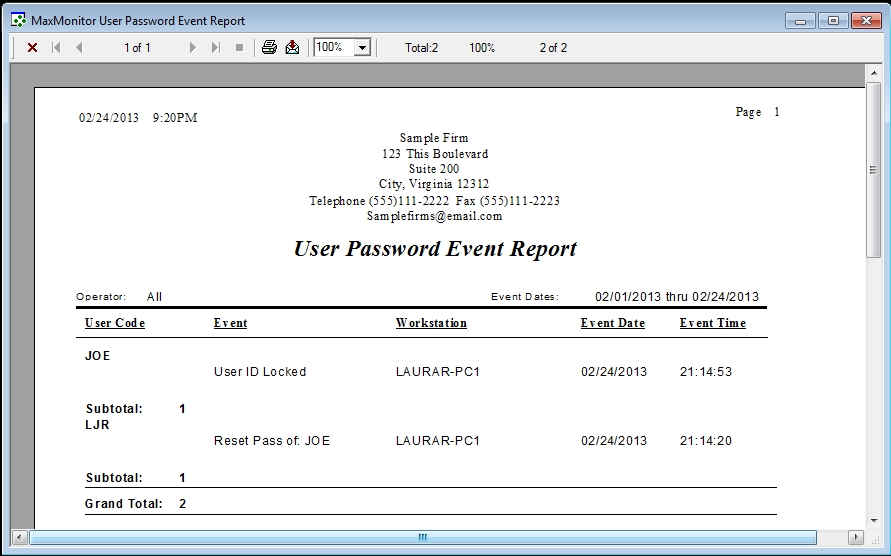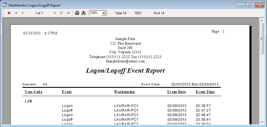 MaxMonitor keeps a log of each Users Login and Logoff Events. Listing the user codes, the workstations used and the times of logins and logoffs.